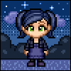 a pixel art avatar in shades of blue